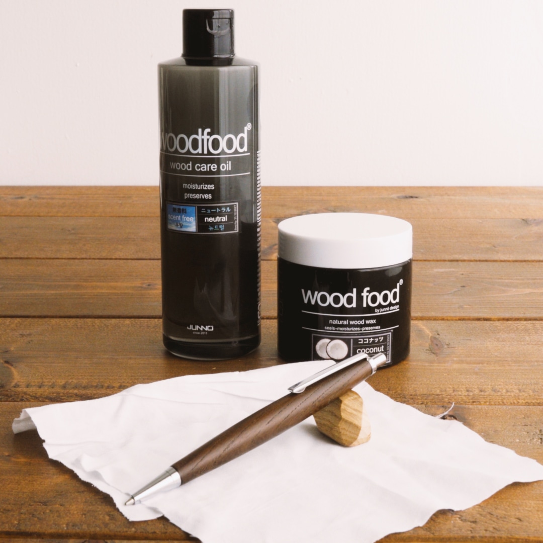 わたなべ木工芸の木軸ペンには、木軸部分のお手入れ用として蜜蝋ワックスを付属していますので、
