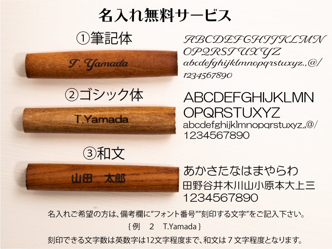 刻印する文字とともに備考欄にお書き下さい。